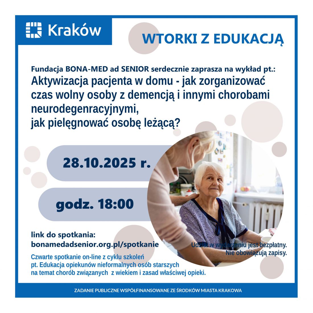 Wykład on-line „Aktywizacja pacjenta w domu - jak zorganizować czas wolny osoby z demencją i chorobami neurodegeneracyjnymi. Jak pielęgnować osobę leżącą"